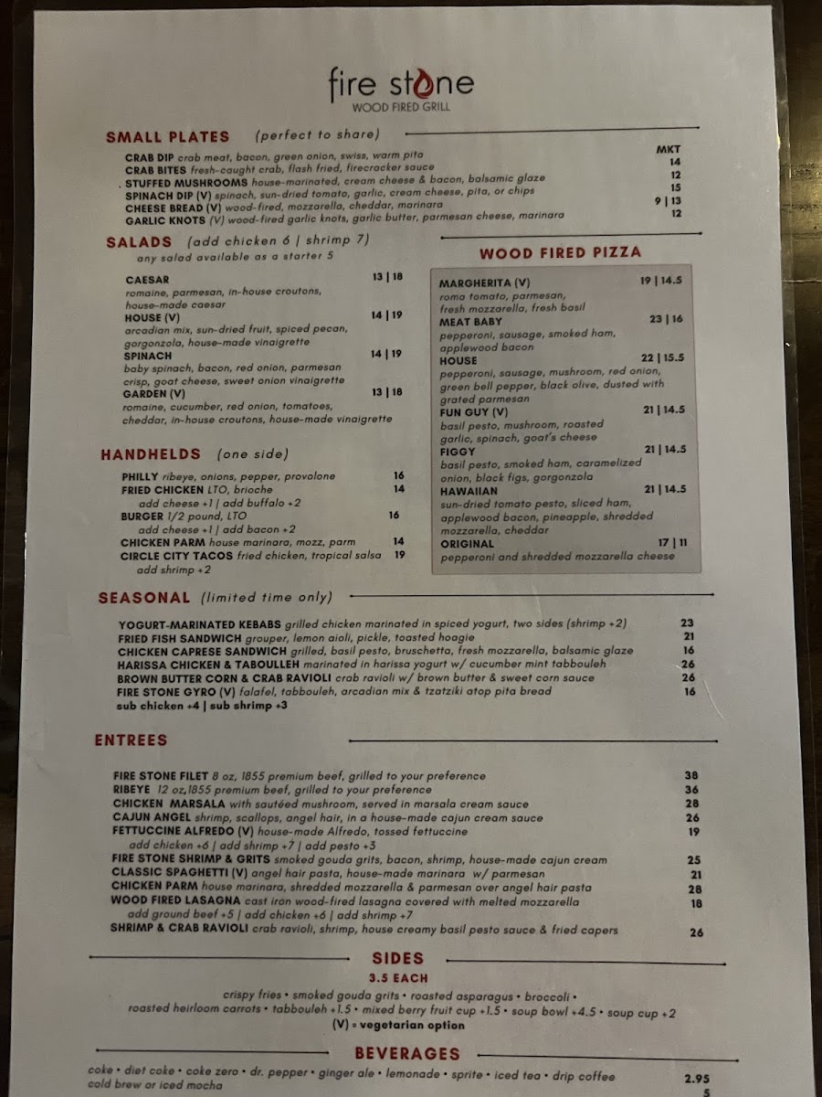 For meat lovers, the grilled ribeye is expertly prepared, delivering a tender and flavorful experience that keeps guests returning. With a friendly ambiance and attentive service, highlighted by staff member Logan's charm and expertise, Fire Stone elevates your dining experience. And don’t forget to try their acclaimed spinach dip and decadent Cajun pasta for a full taste of what this grill has to offer. Prepare to be pleasantly surprised—you won’t want to miss this culinary delight!